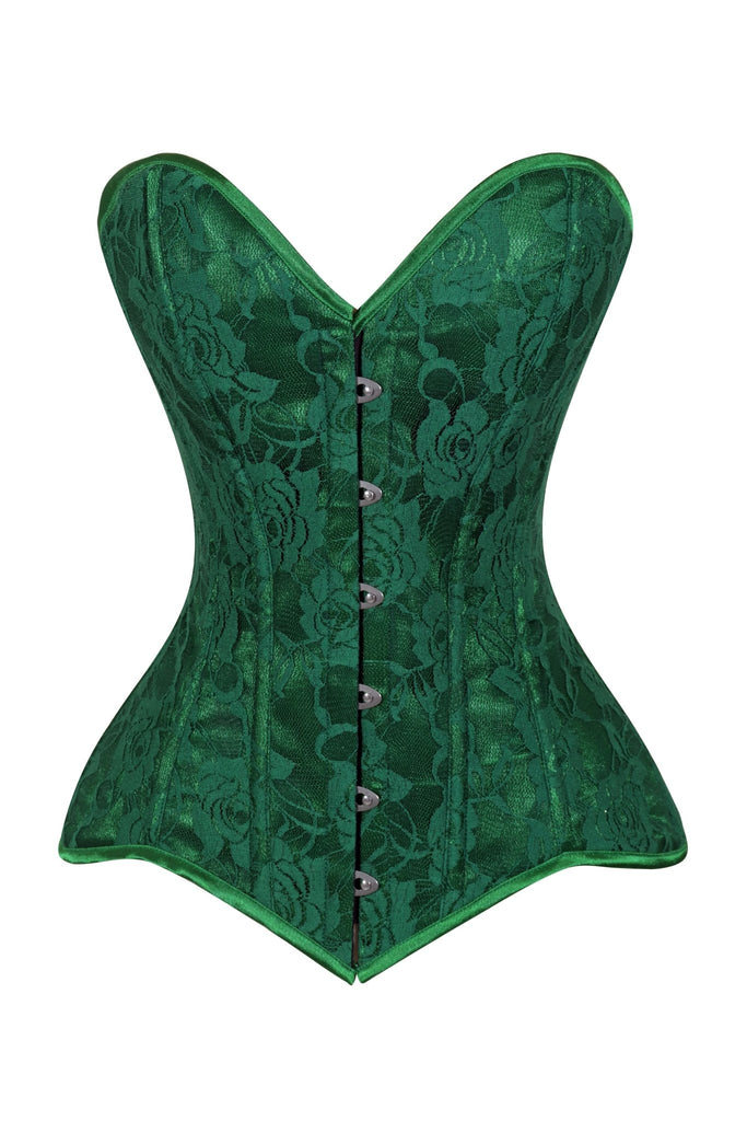 Lavish Green Lace Overbust Corset Sweetheart Neckline Busk Closure