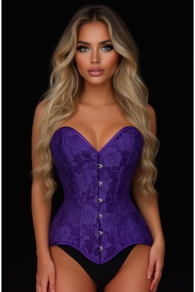 Turn heads in this stunning purple lace corset, featuring a romantic floral overlay and dramatic hourglass shaping. Crafted with durable acrylic boning, this structured piece beautifully defines the waist while offering comfortable flexibility. The sweetheart neckline and classic lace-up back complete the look — perfect for boudoir styling, special occasions, or layering as a fashion statement.