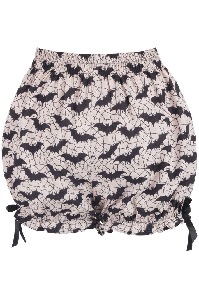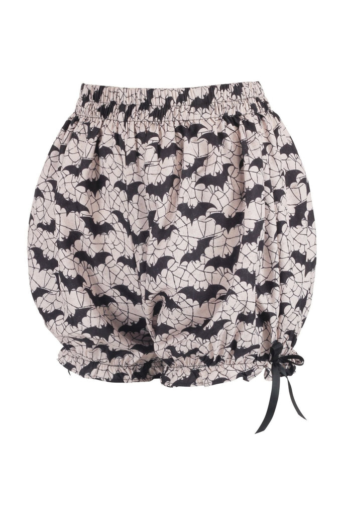 Add a spooky-chic twist to your wardrobe with these Black and White Bat Print Bloomers! Made from soft, lightweight crepe fabric. The elastic waistband and adjustable leg ties ensure a comfortable, customizable fit. Perfect for layering under corsets, skirts, or costumes for Halloween, cosplay, or festival looks.
