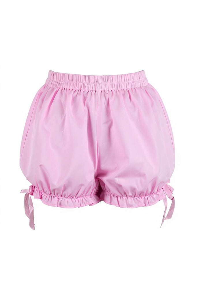 Add a touch of sweet vintage charm to your wardrobe with these baby pink bloomers. Designed with a comfortable elastic waistband and finished with dainty ribbon ties at the hem, these playful bottoms bring both style and ease to your look. Perfect for layering under costumes, pairing with corsets, or wearing as loungewear, they’re a versatile piece that combines comfort with a hint of flirtatious detail.