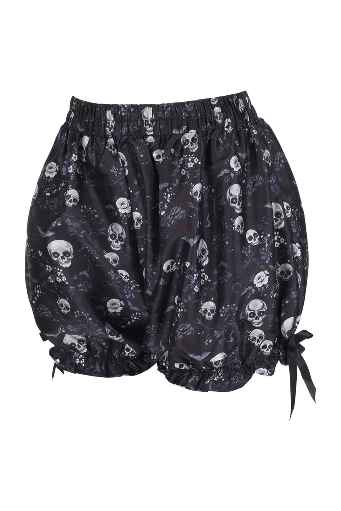 Add a dark, dramatic edge to your look with our Skull Printed Crepe Bloomers. Designed with a rich black base and ornate white skull motifs, these bloomers are the perfect blend of gothic elegance and playful volume. Made from lightweight crepe fabric, they offer a structured silhouette that pairs beautifully with corsets, costumes, festival outfits, and alternative fashion styling. Finished with an elastic waistband and satin bow accents, these bloomers deliver comfort, versatility, and standout visual appeal.
