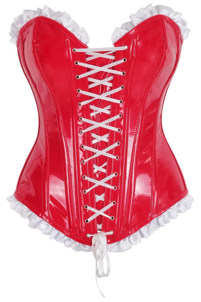 Top Drawer Steel Boned Red Vinyl PVC Patent Lace-Up Corset Top