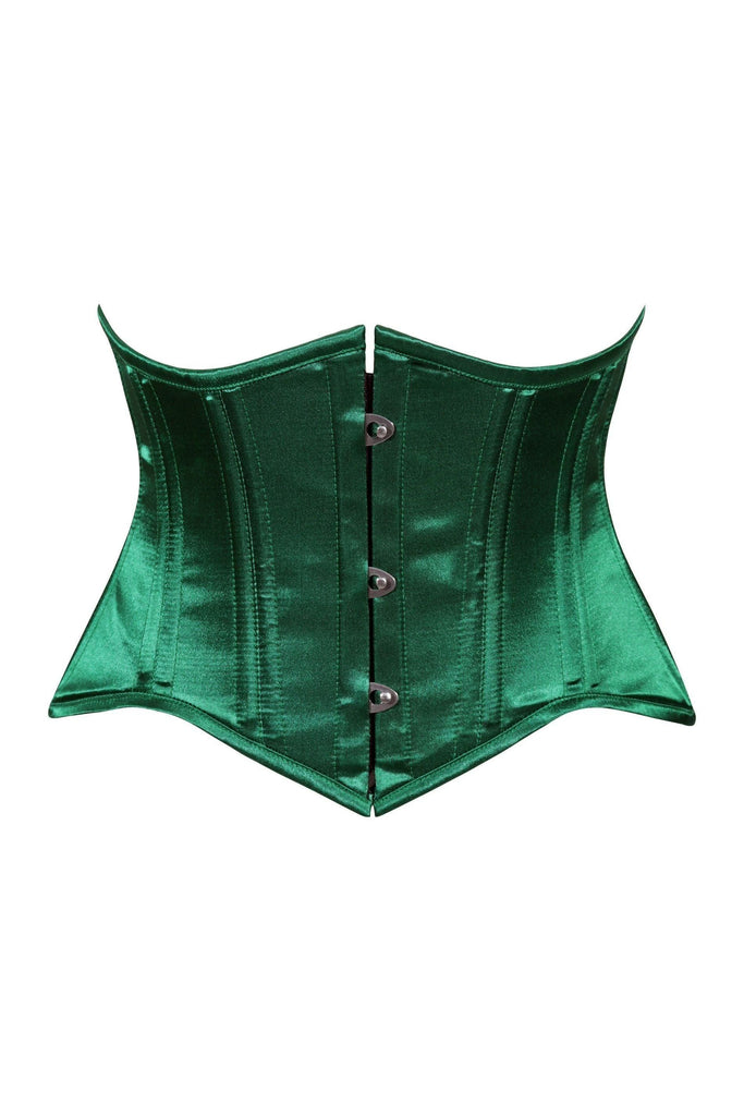 Lavish Dark Green Satin Mini Cincher Underbust Corset Waist Cincher Busk Closure