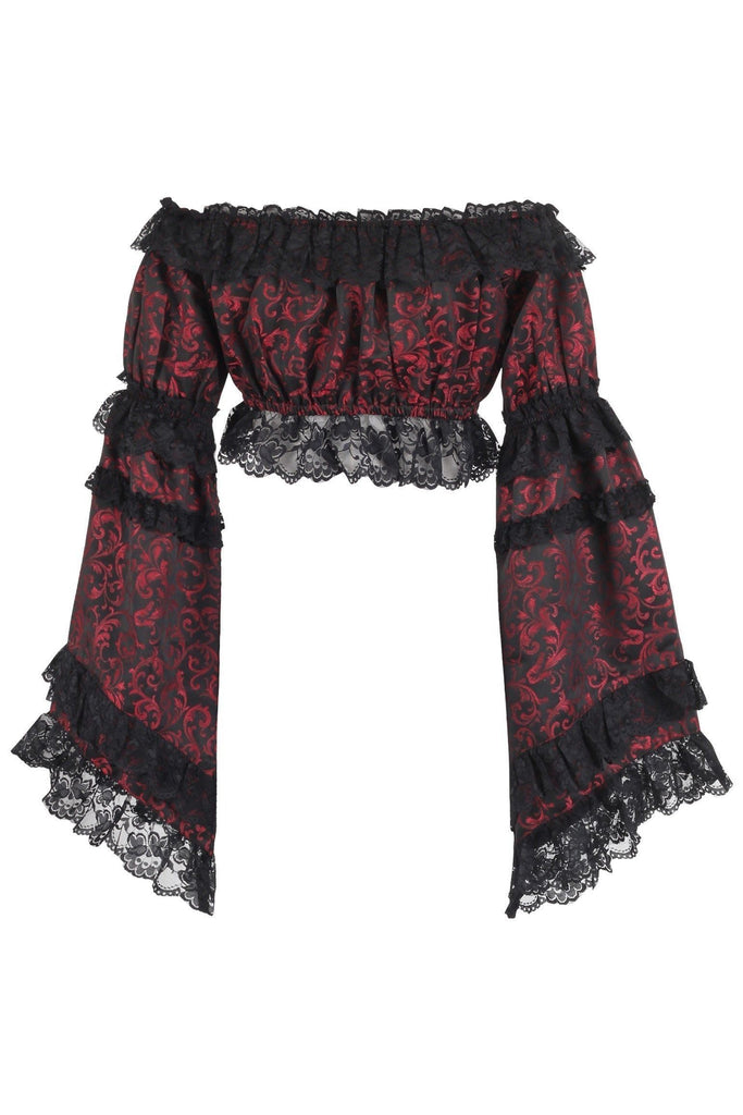 Red/Black Brocade Smocked Flare Sleeve Peasant Top