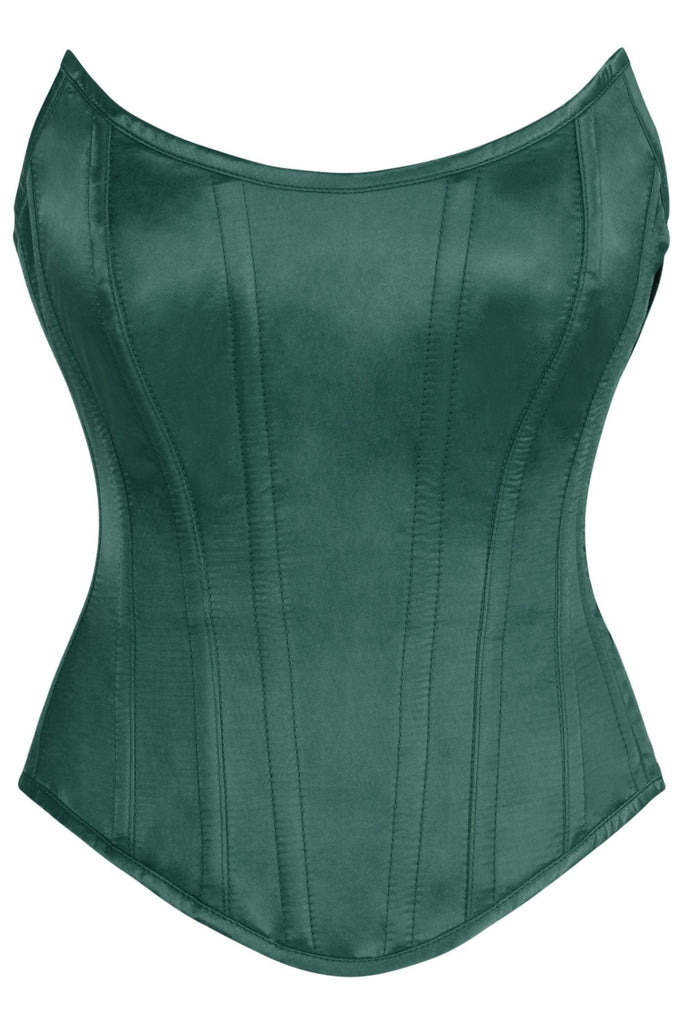 Top Drawer Dark Green Satin Steel Boned Overbust Corset w/Side Zipper