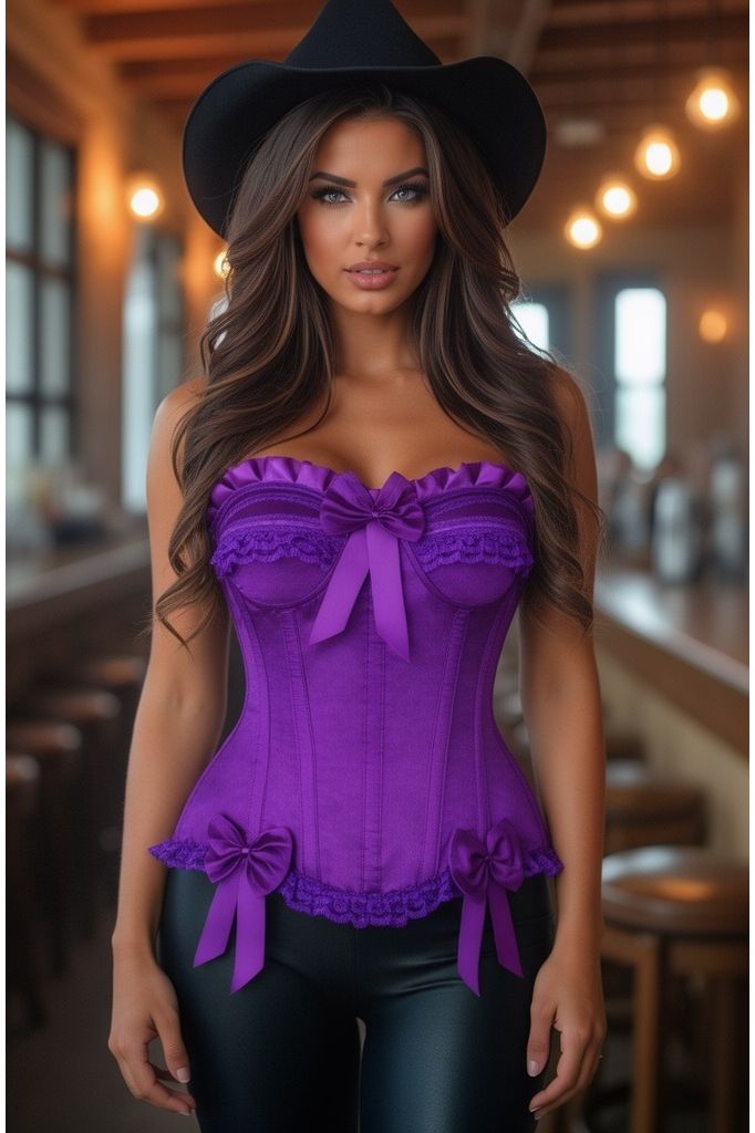 Top Drawer Purple Satin Steel Boned Burlesque Corset