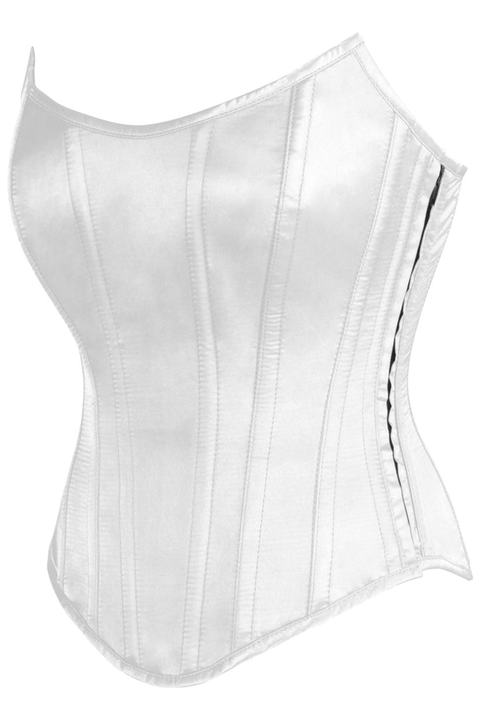 Top Drawer White Satin Steel Boned Overbust Corset w/Side Zipper