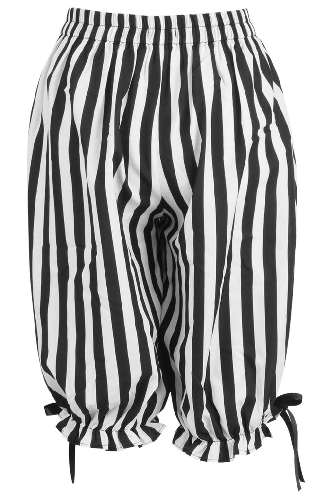 ACC-438-RegularMake a bold statement with these Black & White Striped Bloomers, a timeless piece with a playful twist. The vertical stripes elongate the silhouette while keeping the look fun and theatrical. Designed with an elastic waistband for comfort and ribbon-tied hems for adjustability, these bloomers are perfect for costumes, cosplay, festivals, or everyday alternative fashion. Pair them with corsets, skirts, or accessories for a dramatic and versatile look.