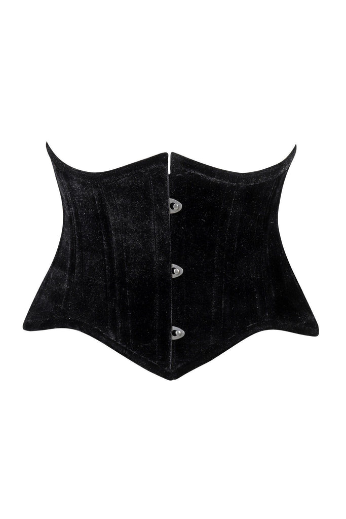 Lavish Black Velvet Mini Cincher Underbust Corset Waist Cincher Busk Closure