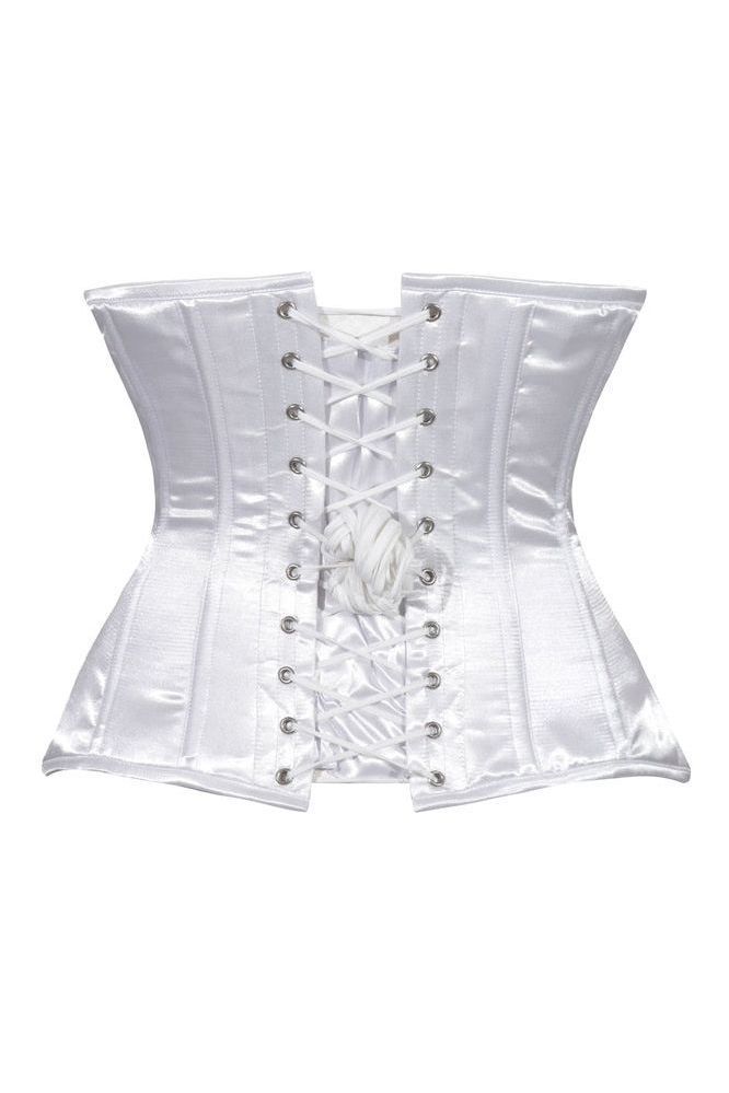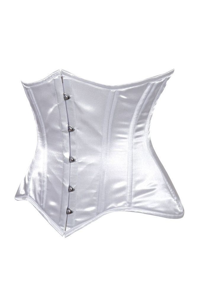 Lavish White Satin Underbust Corset Waist Cincher Busk Closure