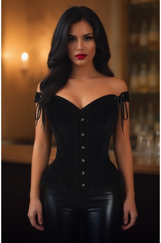 Top Drawer Black Velvet Steel Boned Corset w/Straps