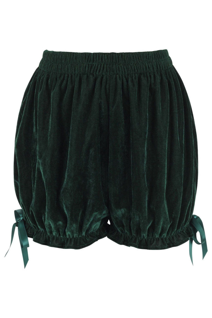 | Add a touch of rich elegance to your wardrobe with these Dark Green Velvet Bloomers, crafted from soft, plush velvet for a luxurious feel and dramatic look. The deep forest-green shade enhances the bloomers’ regal aesthetic, making them perfect for both costuming and alternative fashion styling. Featuring a comfortable elastic waistband and gathered cuffs with coordinating satin ribbon bows, these bloomers provide an adjustable fit with plenty of charm. Perfect for Renaissance fairs, gothic ensembles, steampunk fashion, burlesque, cosplay, and Halloween costuming, these velvet bloomers pair beautifully with corsets, skirts, or layered dresses. Their versatile design makes them a must-have piece for creating standout looks with a touch of historical flair and modern drama. |