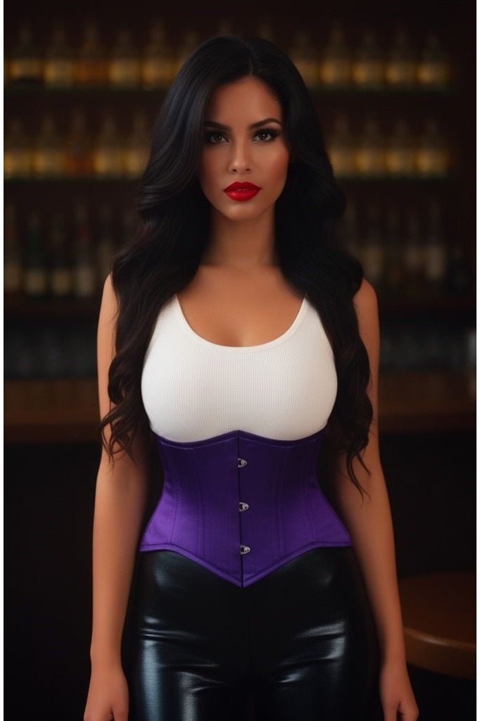 Lavish Dark Purple Satin Mini Cincher Underbust Corset Waist Cincher Busk Closure - Daisy Corsets