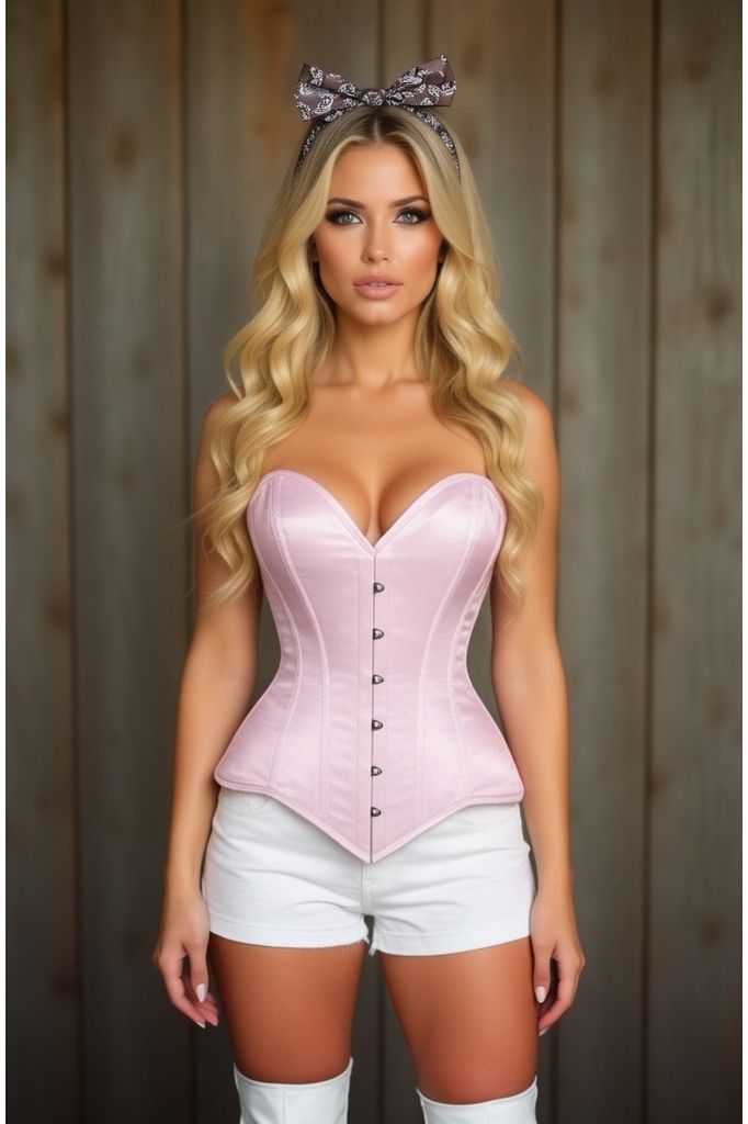 Lavish Lt Pink Satin Overbust Corset Sweetheart Neckline Busk Closure