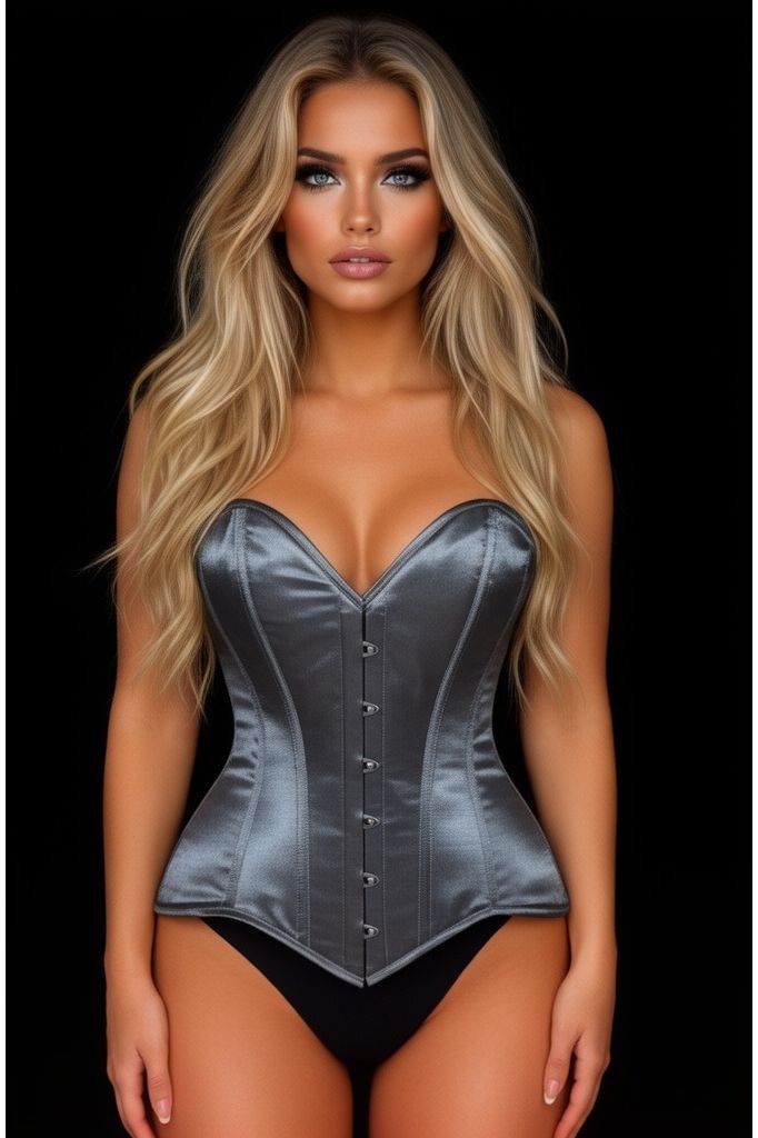 Lavish Dark Silver Overbust Corset Sweetheart Neckline Busk Closure - Daisy Corsets