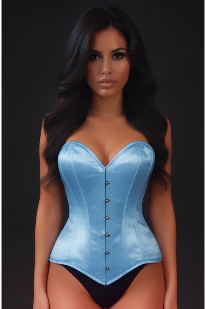 Lavish Lt Blue Satin Overbust Corset Sweetheart Neckline Busk Closure - Daisy Corsets