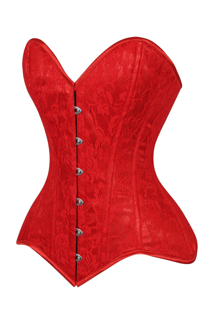Lavish Red Lace Overbust Corset Sweetheart Neckline Busk Closure