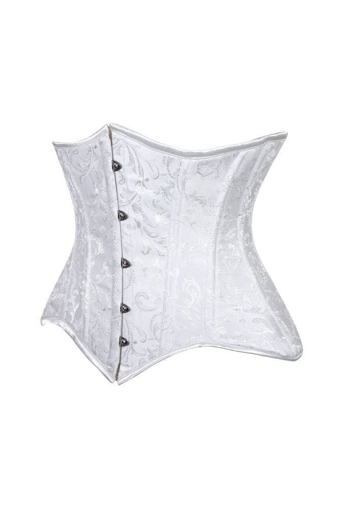 Lavish White Brocade Waist Cincher Under Bust Corset w/Front Busk Closure